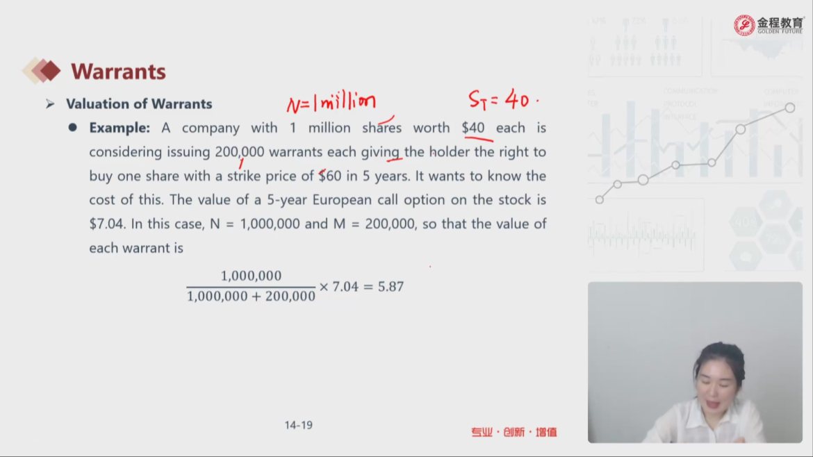 请问这里ST=40是不是干扰项?为什么用(NST+MK)/N+M-K这个公式算出来的权证价值不一样?