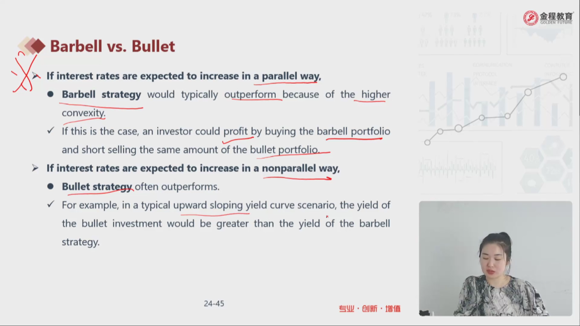 老师请问当利率平行移动时候,从价格变化来说 barbell优于 bullet。但是第二段这里 非平行移动时候 bullet一般好于barbell 为什么变成从yield收益角度了?