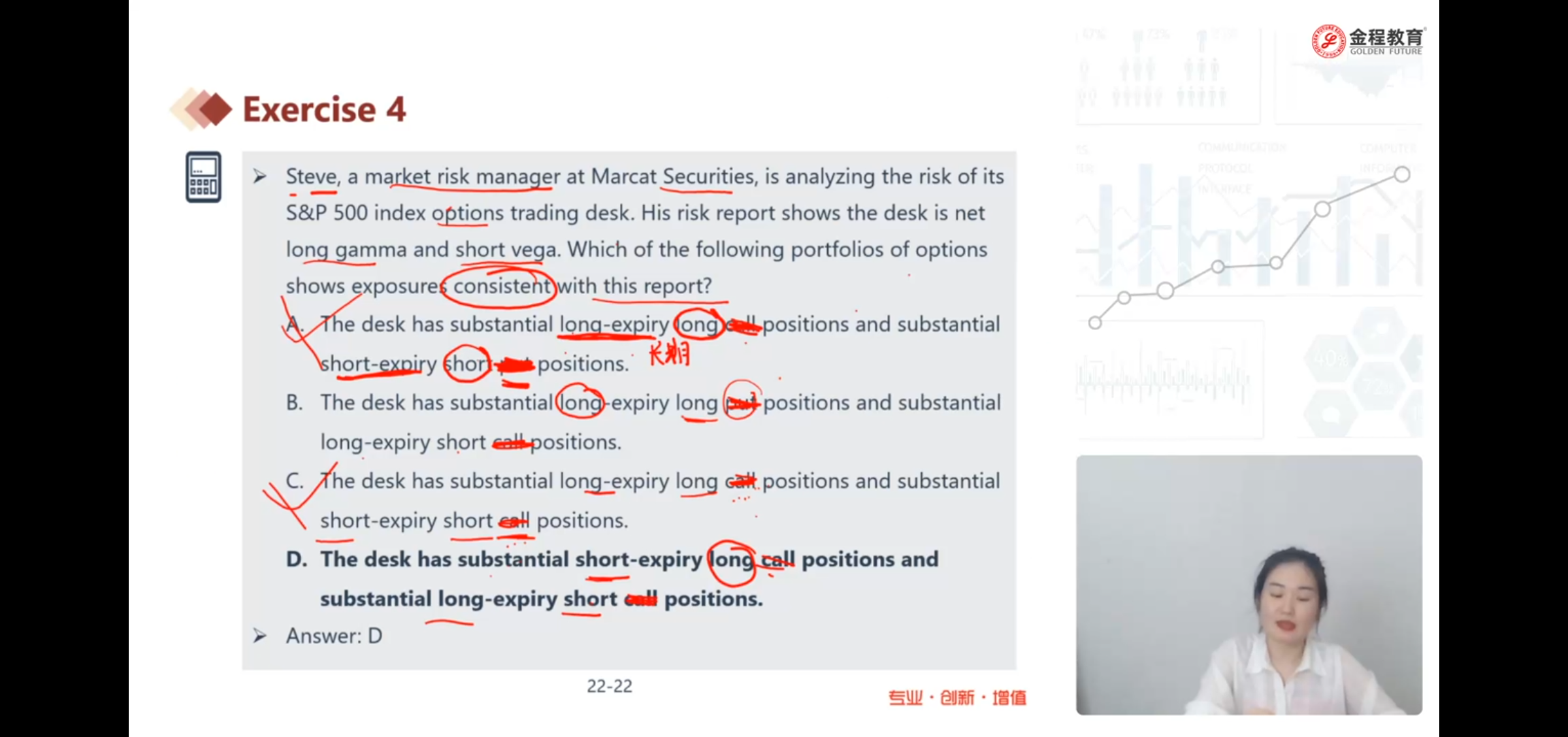 - 我怎么感觉这题不太对呢。特别是C/D两个,都是需要股价上去才可能有利,所以逻辑是一样啊,都是做高业绩,但是C反正都遥遥无期,动力没那么足吧。B现在是平值,就差那一把火就能盈利了所以应该最要努力把业绩做起来吧?A也是,你既然都深度实值了,赶紧卖了得了,还做什么风险管理。这题我都不懂