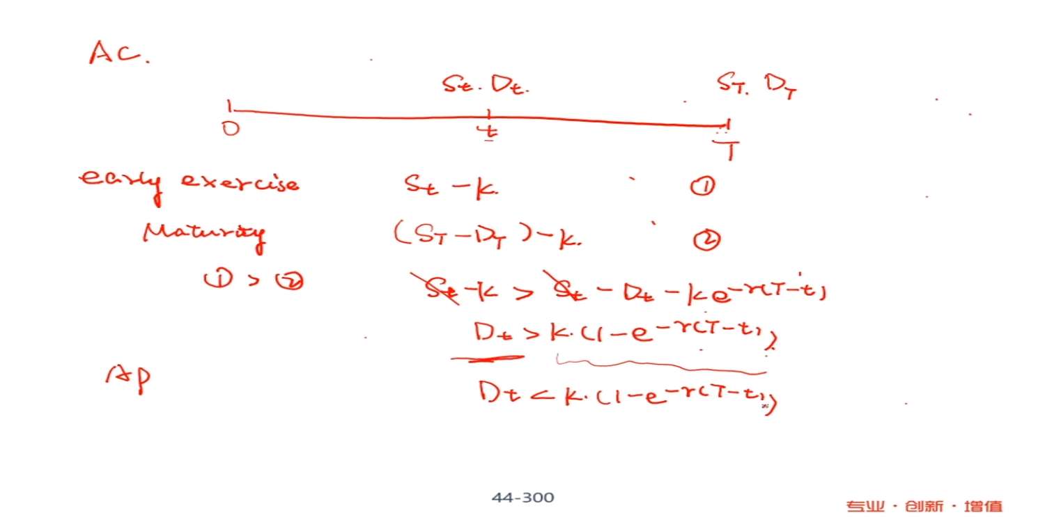 这里比较T时的收益,为什么是St-Dt-K*exp(-r(T-t)),而不是(ST-DT-K)*exp(-r(T-t))?