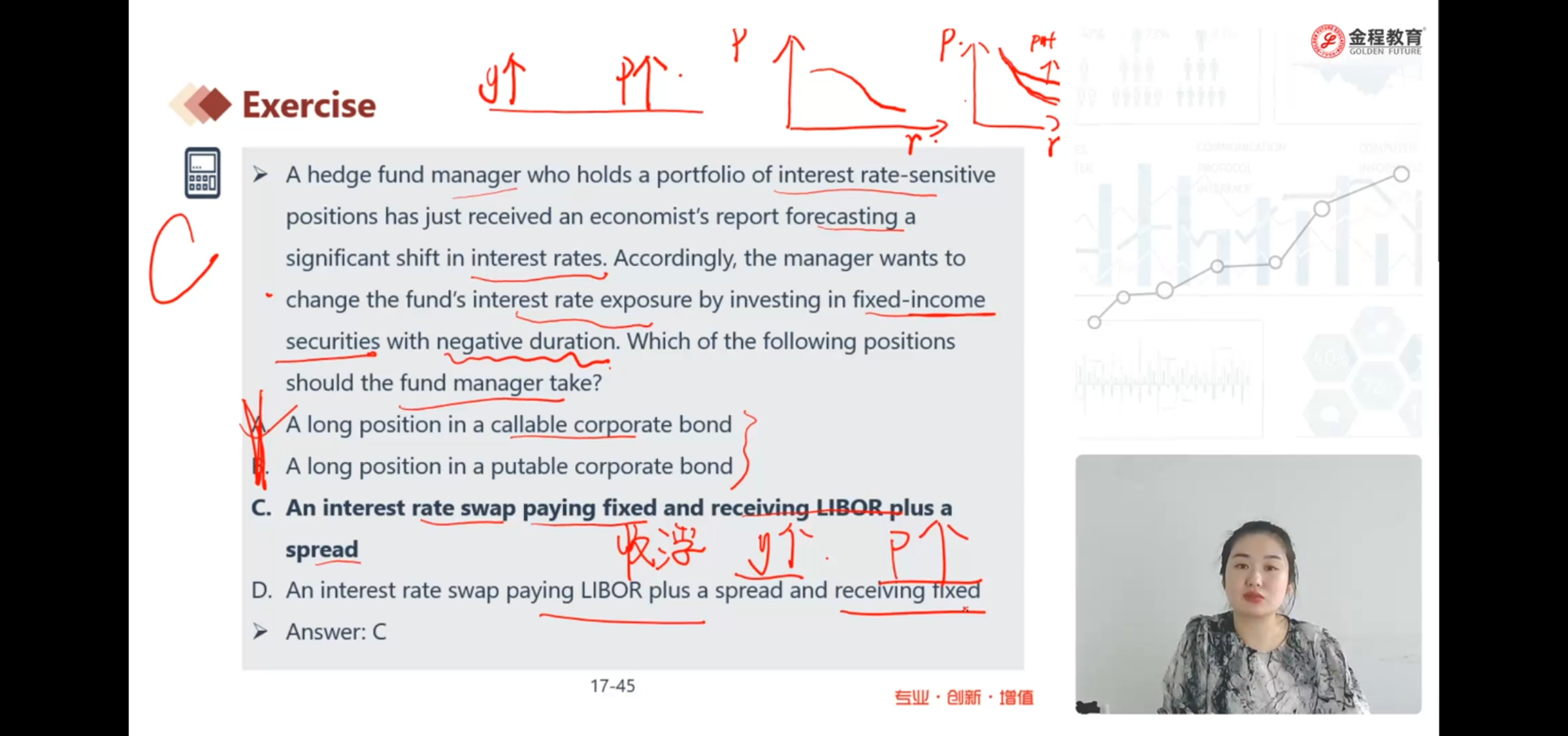 老师这里对C的讲解只讲了利率上升的情况,但是题目并没有说是利率上升,所以请补充说明一下利率下降时,C也是正确的理由。