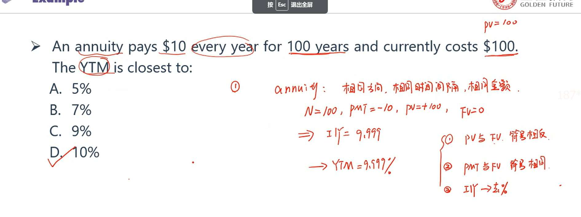 计算机计算步骤是?为什么我计算出的结果直接报错,N=100,PV=-100,FV=0,PMT=100 按cpt +1/Y