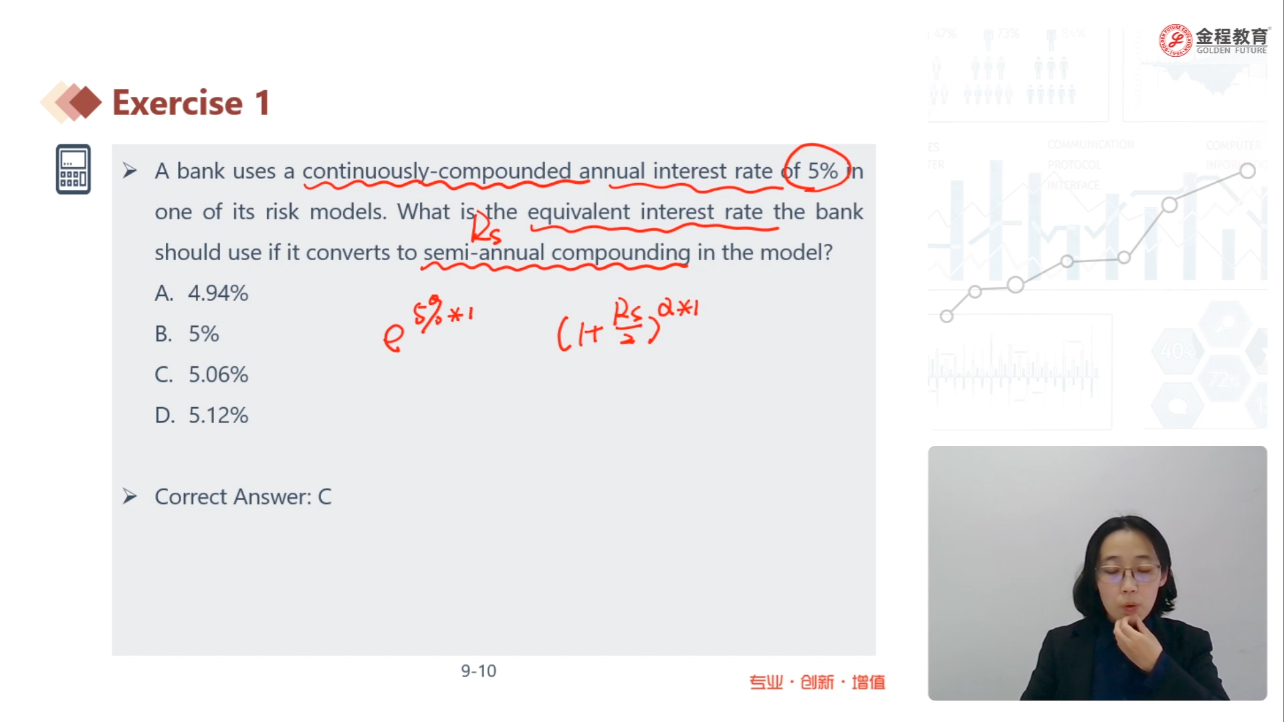 老师,请您帮忙解释一下,这道题为什么一般复利一边的T是1,题目要求按半年复利,那么一年内应该支付2次,T为什么不是2呢