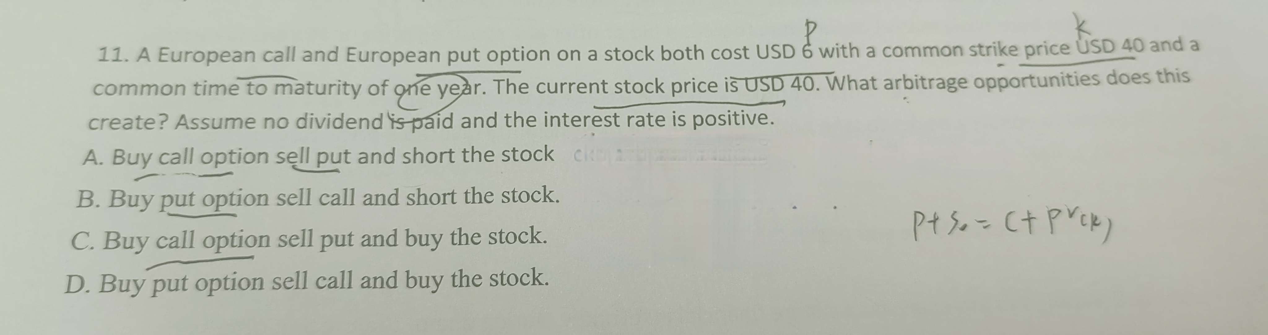 老师,能帮我看看这道题怎么用买卖权平价理论做吗