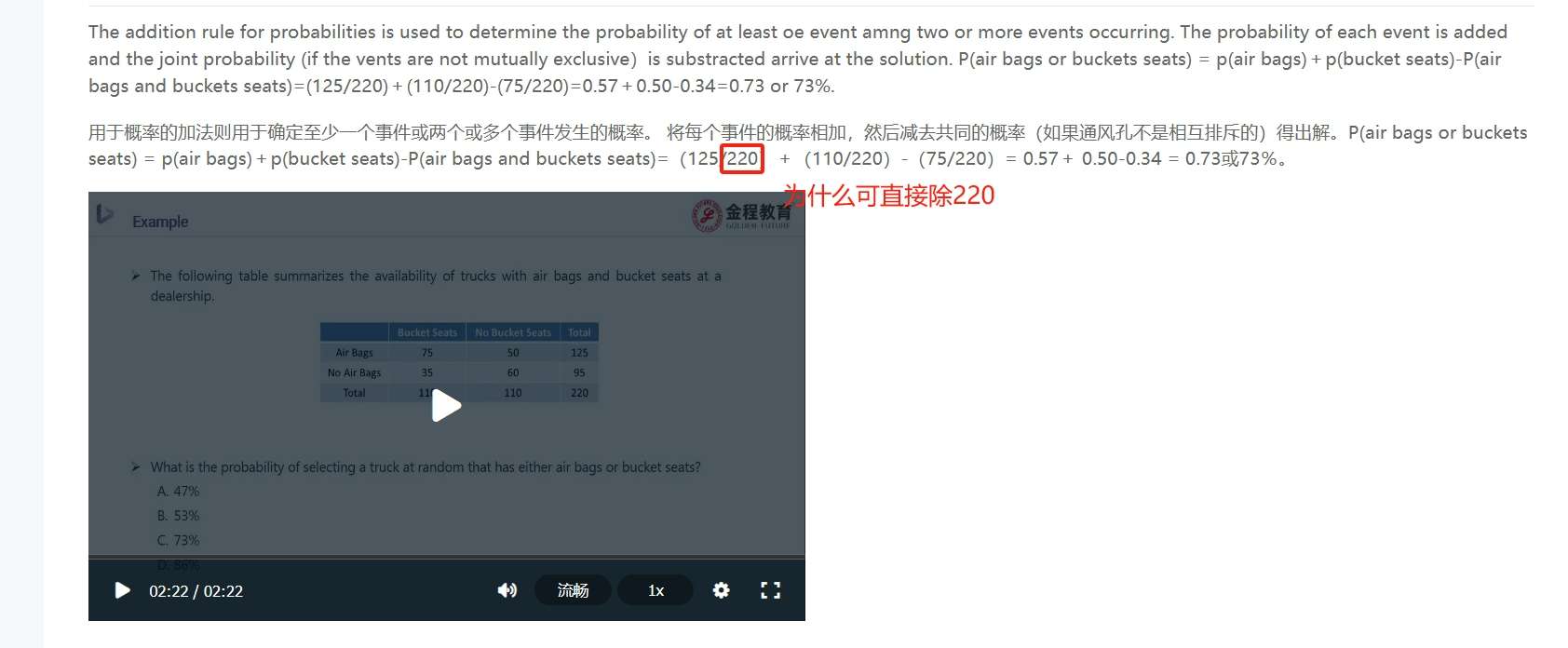 为什么计算中是直接除220,为什么不是采用total probability formula?