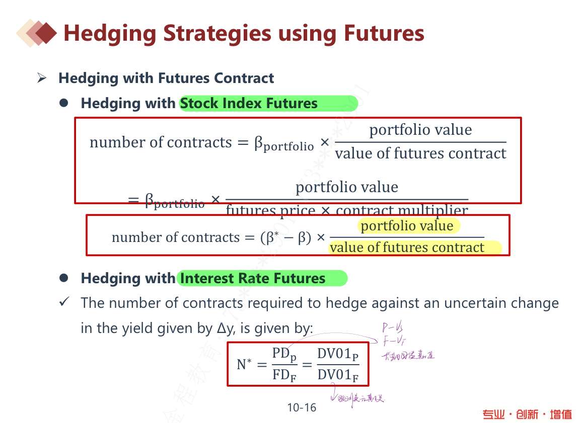 请问hedging with stock index futures,1、公式里面两个beta相减是为什么呢,两个beta分别表示什么呢?2、两个红色方框里面的公式所求出的number of contracts 表达的是一个概念吗?为什么一个是beta portfolio 一个是beta*-beta呢?3、这三个beta分别表示什么意思呢?感谢啦!