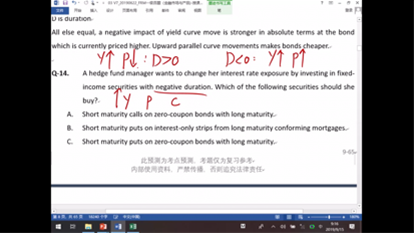 老师,这里A选项和我们在希腊字母里讲的long call的Rho > 0有什么区别和联系呢?Rho>0的意思不就是利率上升,期权价格上升(MD<0)吗?
