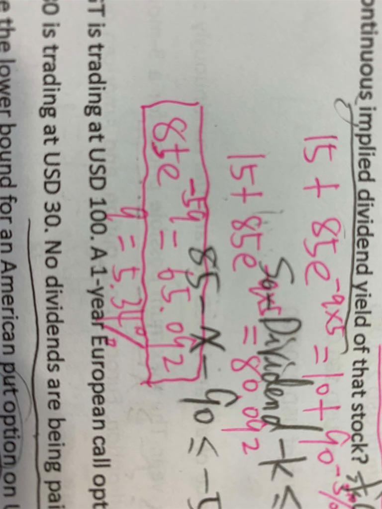老师,第四门课百题的第4题,计算分红率中请问到了照片中粉色画框的这一步,用计算器怎么按可以得出q为5.34%啊?老师讲解时也没有说到。非常感谢!