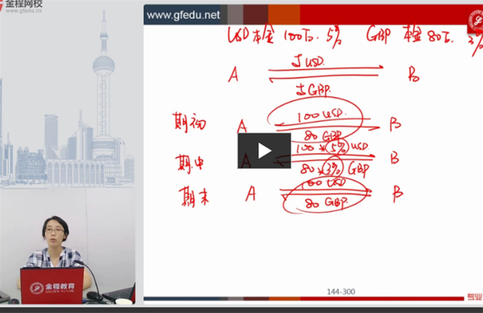老师这里是不是画错了,期末,A应该还给B80GBP,而不是100USD