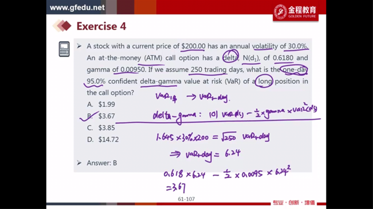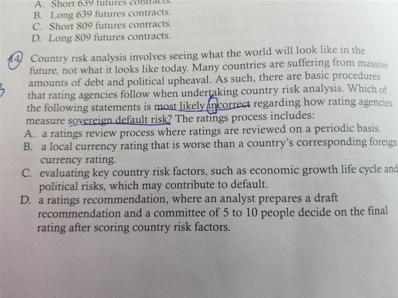 - 我怎么感觉这题不太对呢。特别是C/D两个,都是需要股价上去才可能有利,所以逻辑是一样啊,都是做高业绩,但是C反正都遥遥无期,动力没那么足吧。B现在是平值,就差那一把火就能盈利了所以应该最要努力把业绩做起来吧?A也是,你既然都深度实值了,赶紧卖了得了,还做什么风险管理。这题我都不懂