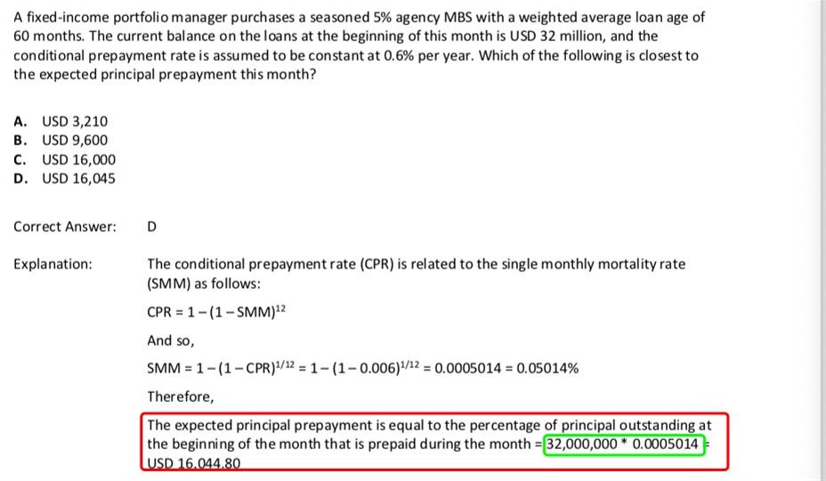 这道题求prepayment的时候为什么直接是smm*balance,而不是用smm*balance*scheduled principle/month呢,正常是应该计算scheduled principle/month的呀