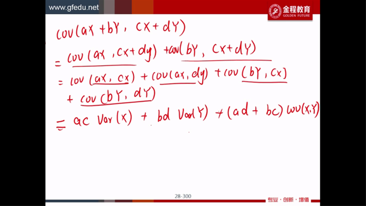 这个公式不太明白,X和X的相关性不就是一吗?ax cx的协方差,不就应该等于A C吗?