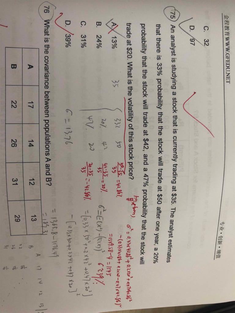 老师,请问Q75 这里不是问股票价格的波动吗?为什么不直接用那几个价格算波动,就是我铅笔算的,算出来是A,为什么要算return的波动?