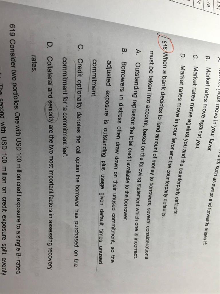 第79题 未来收GBP 怕GBP贬值或者说怕USD升值 C和D中 GBP against USD可以写成 GBP/USD 即把USD看成commodity 那么赌USD升值不应该long call或者short put吗