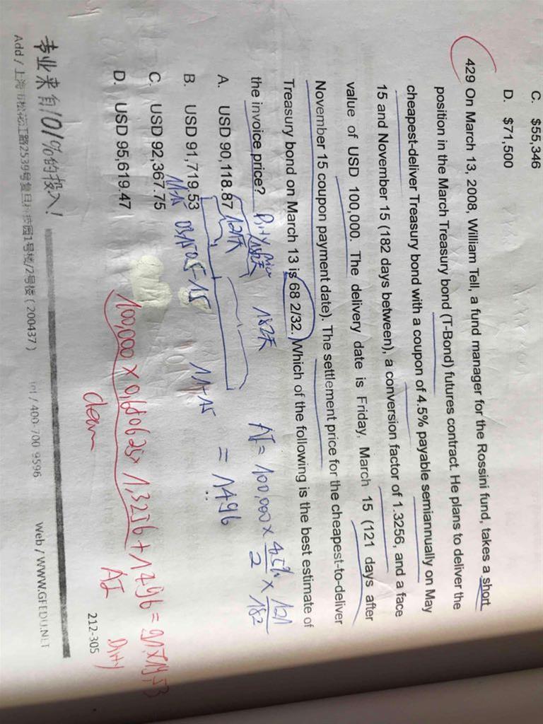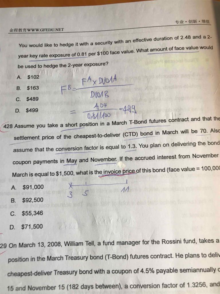 老师,这道题的clean price为什么是10万x0,680625x1,3256呀?这个和CTD的Net cost= QBP-QFPxCF 有关系吗?