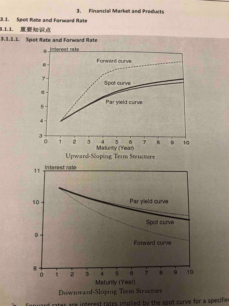 老师请问这个图为什么是这样的呢?upward sloping 时,为什么是forward rate大于spot rate大于par yield?par yield curve是不是zero coupon 的另一种说法?
