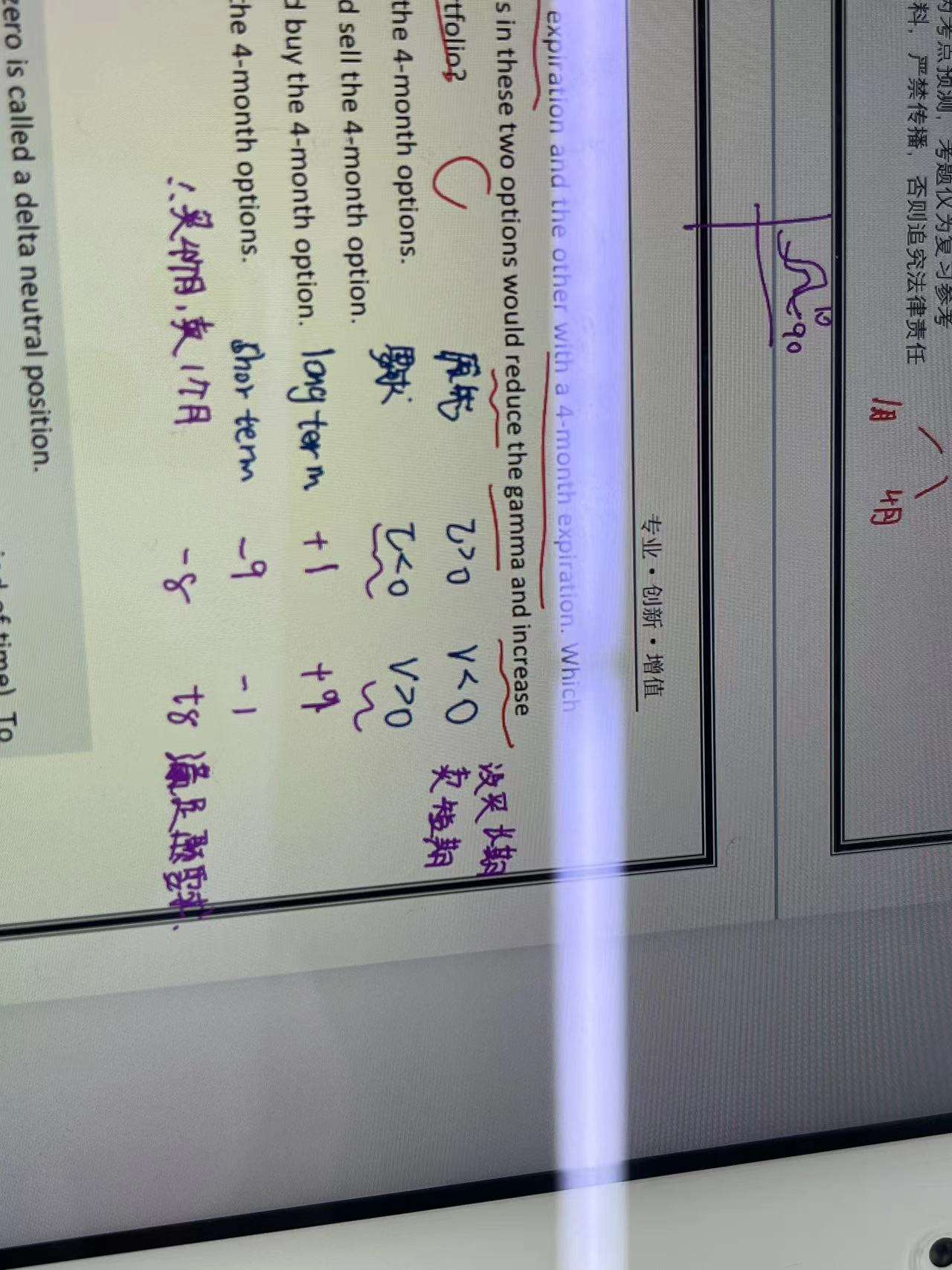 这道题老师先假设了同时买入长期和短期,如果做对冲的话theta应该大于0,那为啥下面的是负号啊?