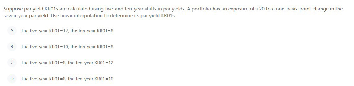 老师好 我已经算出来了5年的变动1bp影响7年变动0.6,10年的变动1bp影响7年的变化0.4,但是怎么算出他们俩的kr01呢?