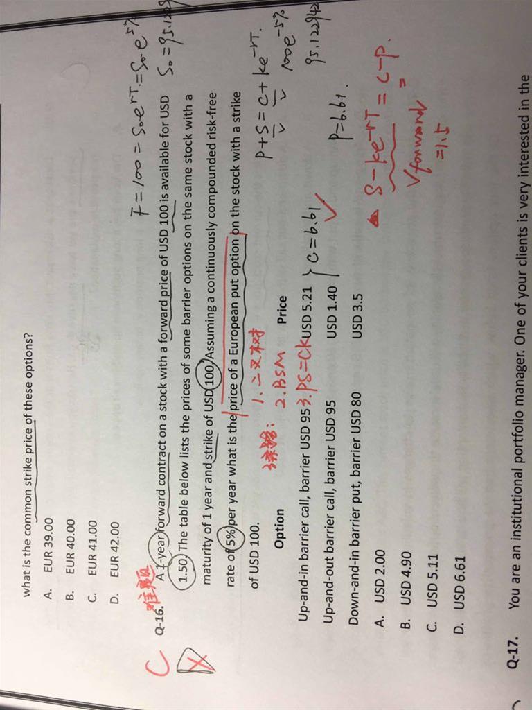 问一下16题第一句话里的100是什么?是forward price吗?