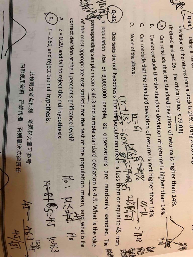 老师,第34题我没理解。根据老师讲的,拒绝域的方向是备则假设的方向,我可能没理解老师这句话的意思,所以不会做题,老师这句话的意思是什么呀?这道题怎么解答呀?谢谢老师。