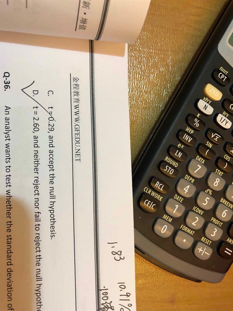 老师,这里面明明总体方差未知且为大样本,为什么不用t统计量呢?是因为D选项应该是拒绝原假设是吧。