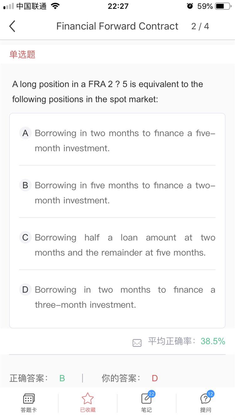 这道题解答听不懂,为啥从现在借5个月,先投资两个月,再相当于是借了后面的三个月,那为啥不等到两个月后直接借后面三个月的不就完了,而且利率就是按FRA锁定的利率?这种操作根本不懂,讲义课程中学到的知识感觉跟实际当中的业务操作是脱离的,学了也根本不会做这种题!