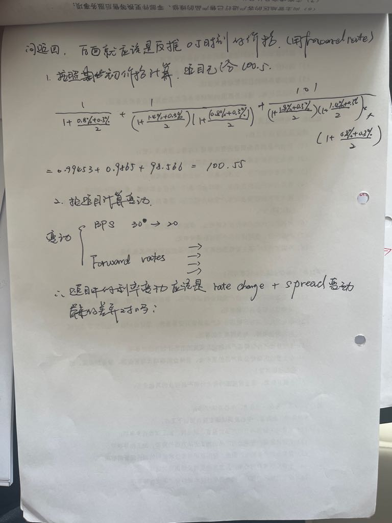 老师好 这题题目里面给的bond price是什么意思 为什么P0是用100.55算的?另外spread都是默认只用期初确定的算吗,不用考虑后面的变动?