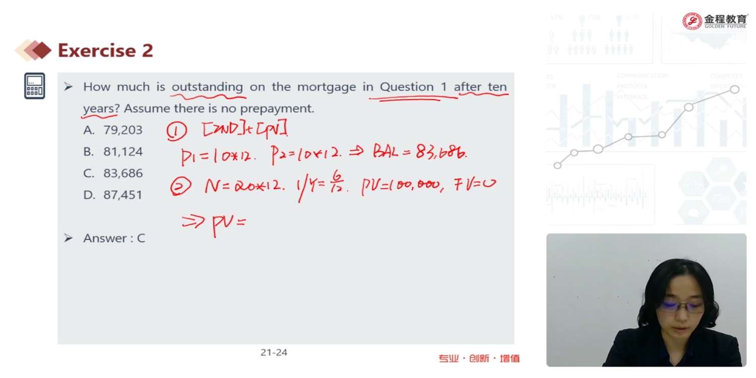 请问老师,这里用摊销法按计算器是怎么按的,2nd、PV就到了amort模式,但是直接就按p1、p2也就是起始月和终止月了,那那些参数从哪里按呢?