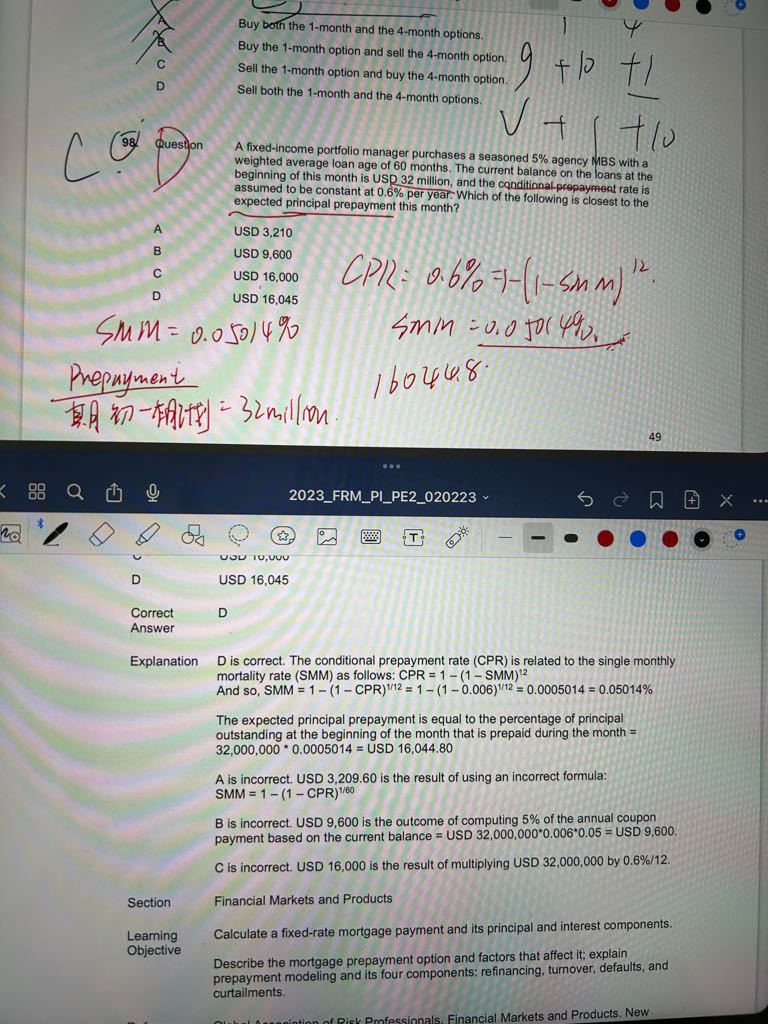 算prepayment不是smm乘以初期余额减本月计划还的本金吗 为什么答案是这么算