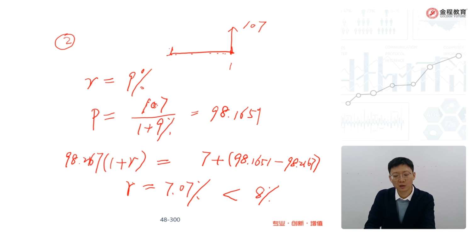 老师,我怎么记得这个地方是106.1/(1+9.44%)(1+R2)啊 相当于106.1折现两期。 为什么是106.1/(1+R2)^2呀?