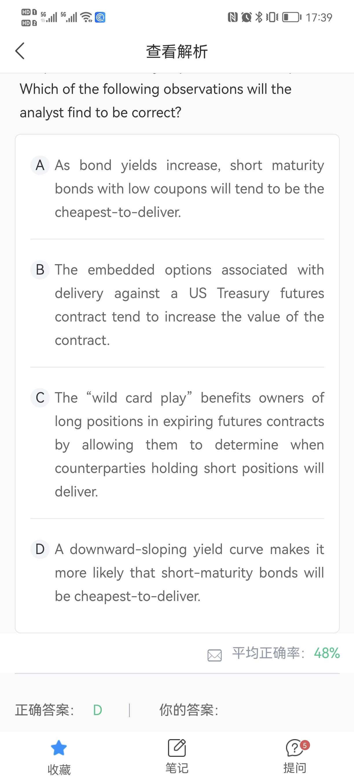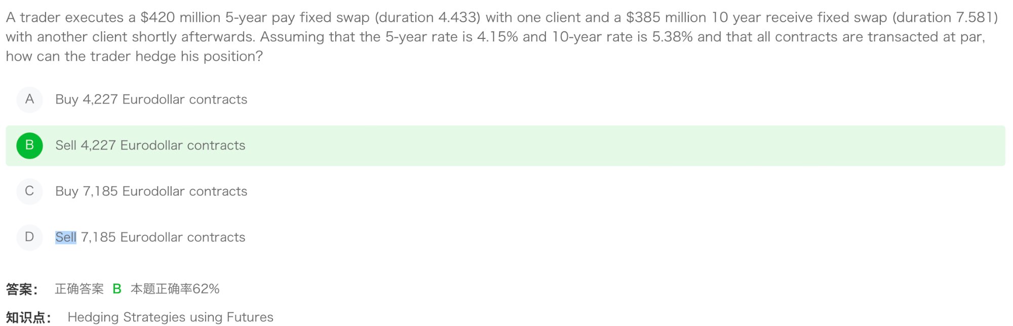 这个题CTD不变的是future price后面那部分,只有bond price是变的,A选项虽然bond price降得少,但还是降了,D选项虽然bond price升得少,但还是升了,降了不应该比升的更应该成为CTD吗?