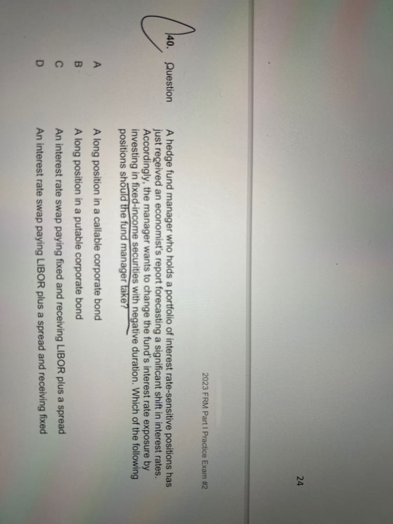 老师我想知道考试里出现的负久期是意思 债券的久期是正的 按理说这个人投资固收资产相当于是买了债券为什么这里的久期是负的