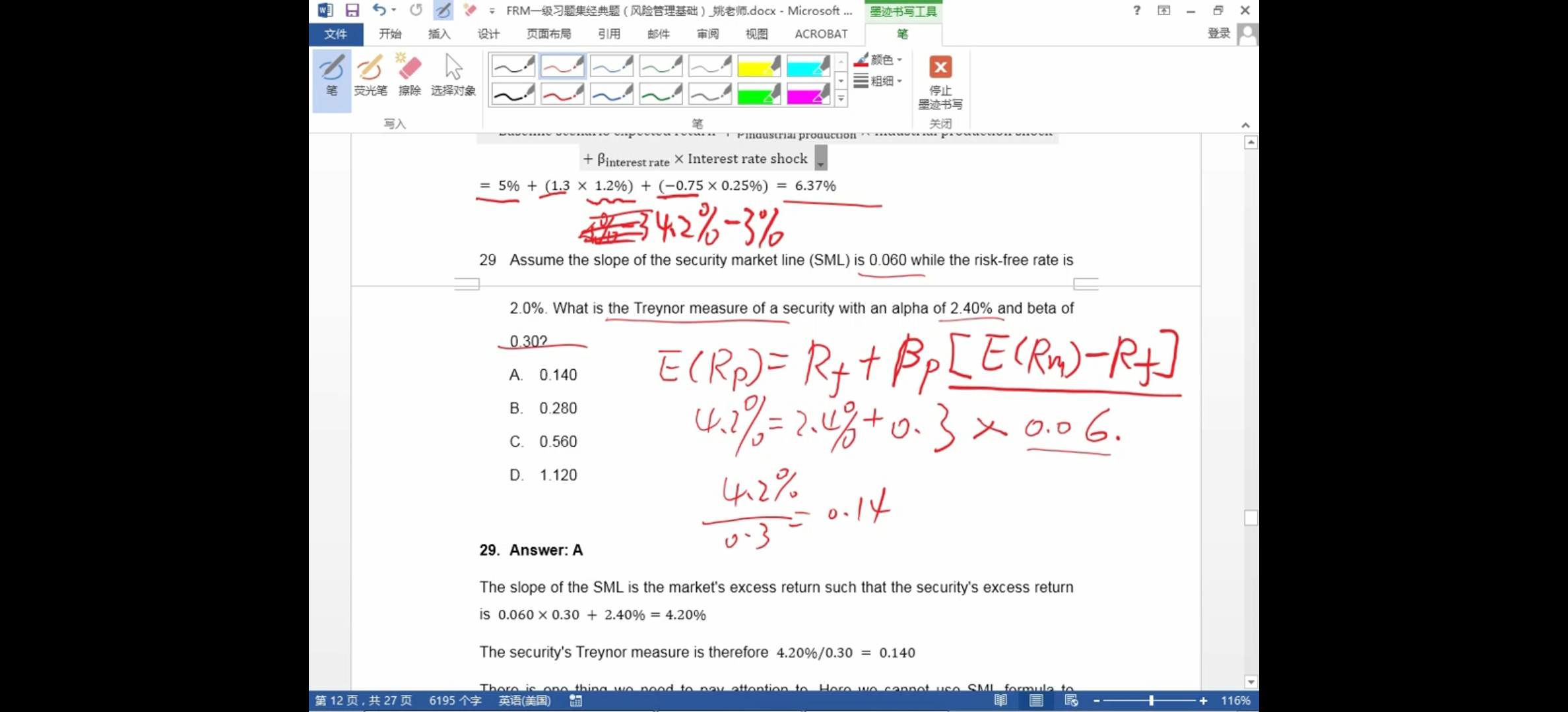 A选项中 β应该是市场溢价对风险的敏感程度吧,为什么表述成风险数值了??这个表述不对吧
