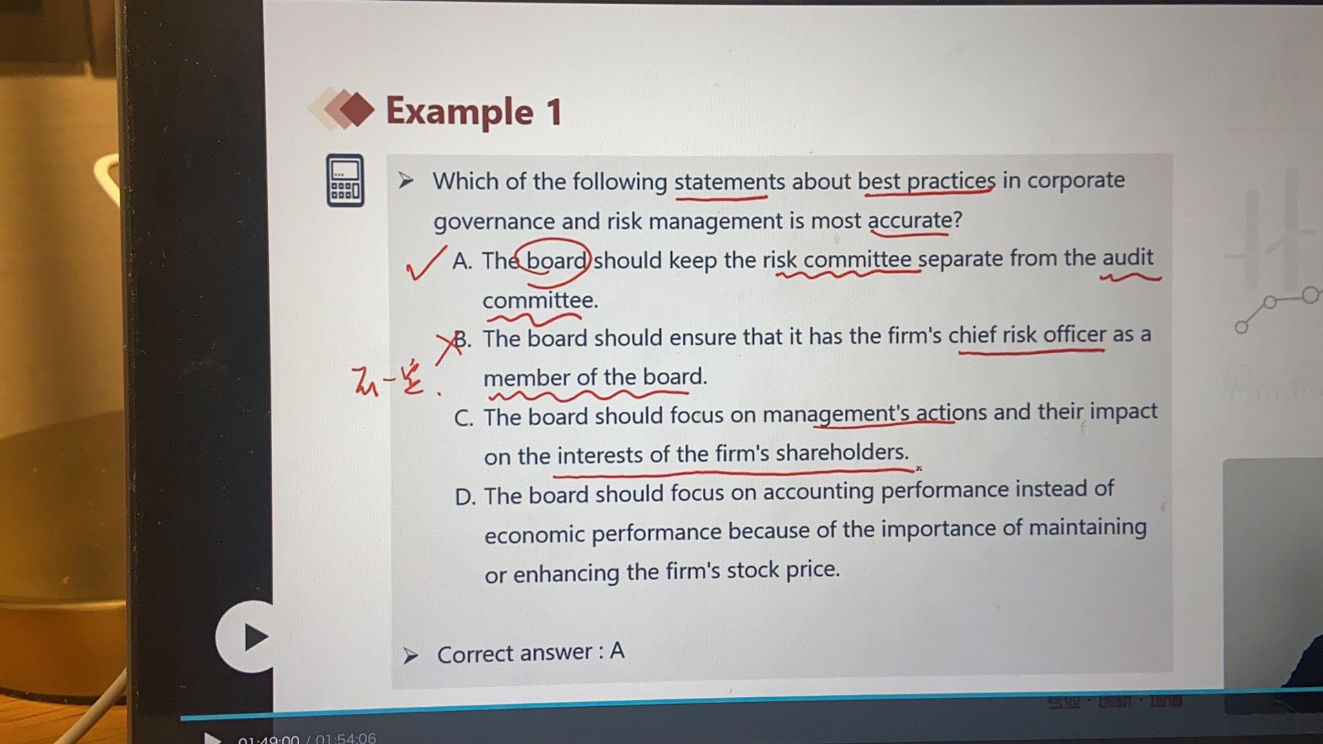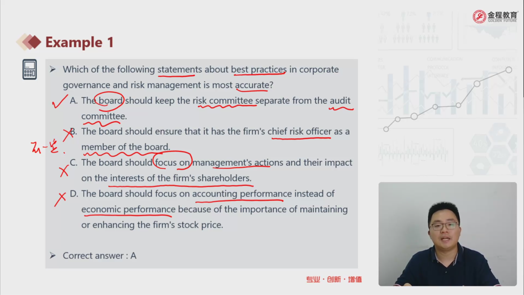 这个C选项老师翻译下来理解这还是很困难,董事会关注高级管理层的行为就是为了纠正他们的行为啊。这个focus on 跟纠正行为不冲突吧?