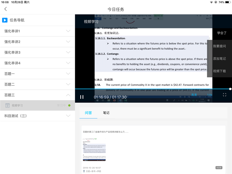 百题的第三门金融市场与产品视频讲解怎么只讲到第57题的?后面题目的讲解视频在哪里找啊?