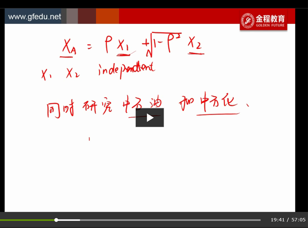 老师好!请问y=ρ*x1+(根号1-ρ^2)*x2,这个乔列斯基分解的式子中X1和Y的含义我能理解,那请问X2代表啥?谢谢!