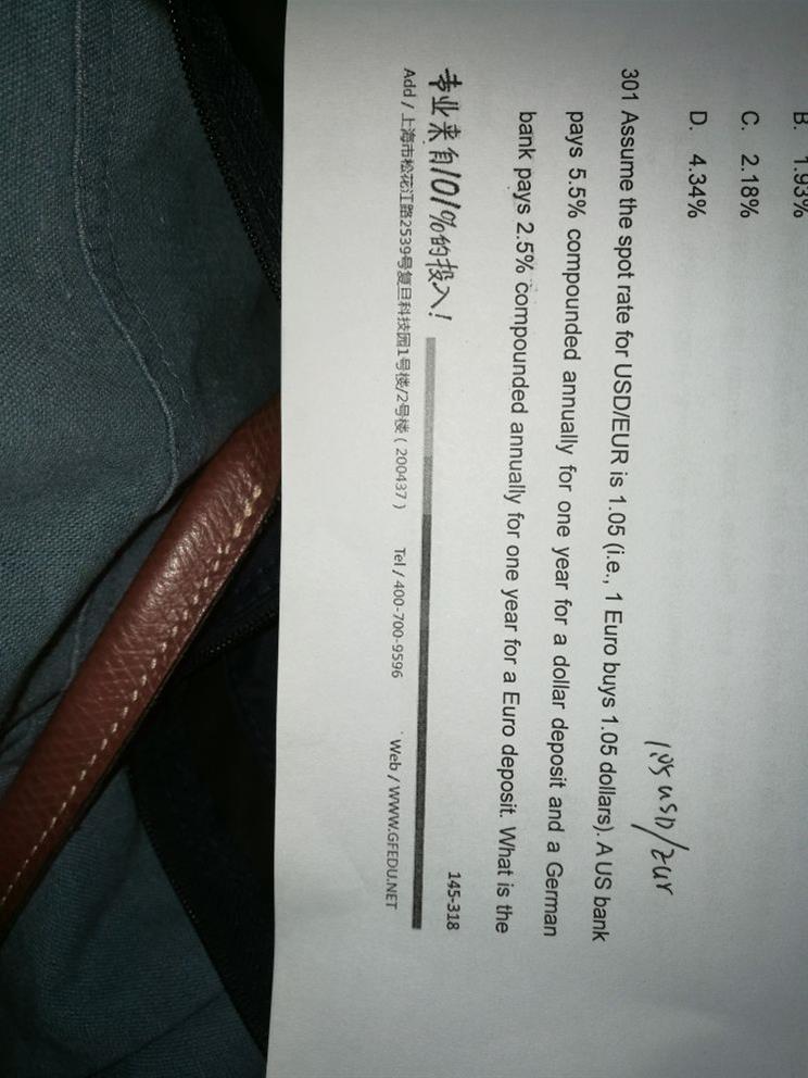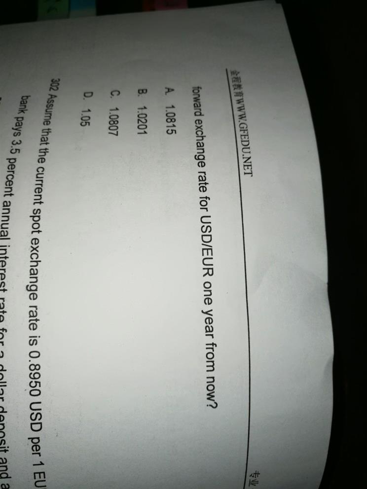 老师,这道题我用的本国利率减外国利率,E的幂,得不出来题目的答案,为何他用的是连续复利,却又没有用E,收到这样的题,我不需要把题干中的连续复利利率转成一般利率吗?