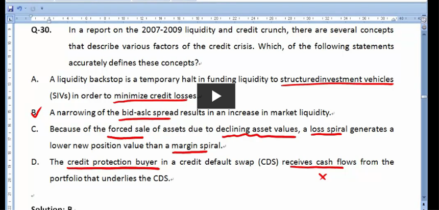 此题让定义various factors of the credit crisis的一种,是信用危机,请问为何b 是在说流动性风险 竟然是正确选项?感觉b已经跑题了