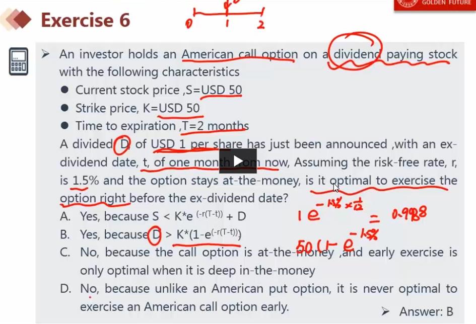 请问老师,图中这道题有分红的AC,这个红利D应该是不用再进行折现了吧?只需要把持有到期的收益折现到这个时间点上两个做比较就可以了吧?老师是不是笔误了?