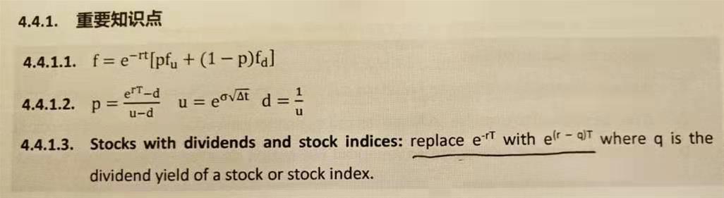老师您好,4.4.1.3后面那个式子是不是少了一个负号?为什么不是e^-(r-q)t?
