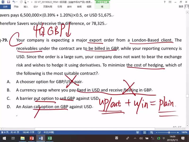 老师这题的B选项 是否解析不妥?梁老师讲解说:货币互换收浮动利息是在谈利率,与汇率无关。可我觉得问题在于收浮动错了,应该是支浮动收固定,因为汇率角度出口商在担心英镑贬值,而支浮动也有担心英镑下降的意思,不管贬值还是下降,都是GBP⬇️。而且答案说只有一期支付流而不是持续的,所以不适合货币互换,这是什么意思?