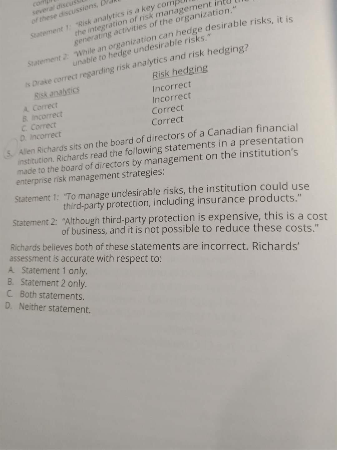 SchweserNotes 书中第46页第5题,答案写的是B,但是解析中Statement 1和2 都是incorrect,那应该是不是答案写错了,应该是D的?