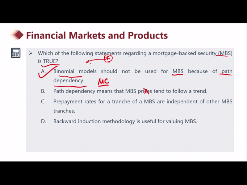 B项中说mbs的价格对利率有路径依赖为什么不对呢?当利率下降,borrower选择提前还款,mbs的价值不是就会下降吗?