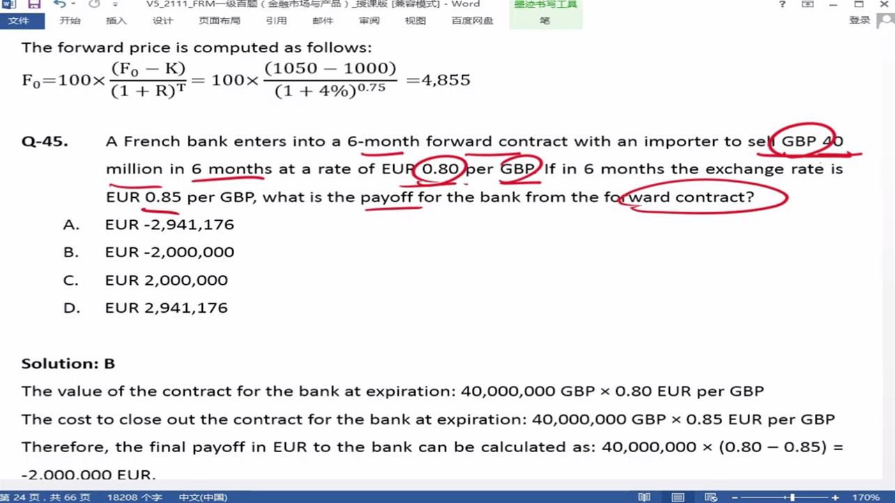 这道题是GBP40million可是他给的利率都是以EUR为基础 不用转换吗?