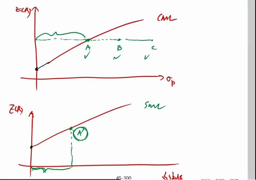 老师讲SML线上的点对应CML上的一系列投资组合(A,B,C等),但是只有A点在CML上不是吗?B,C都是无效的投资组合啊,应该就不在CML上啊。