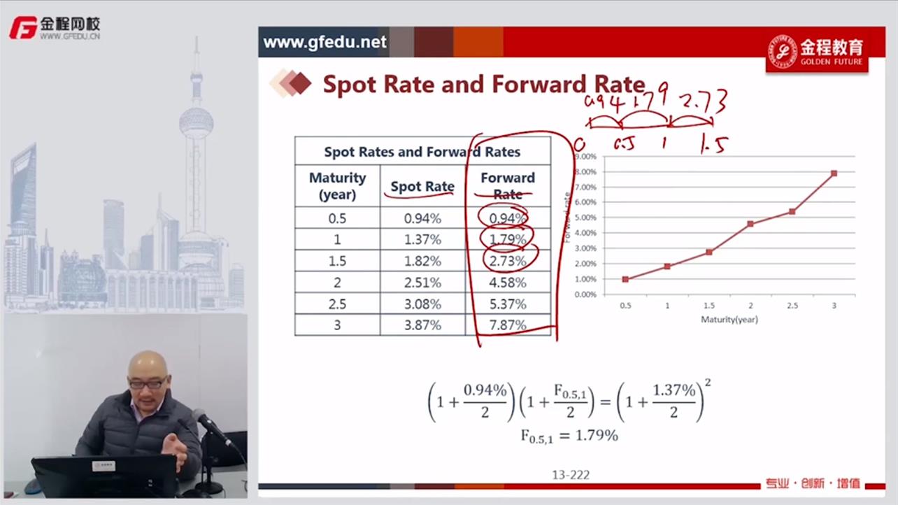 老师你好,这个地方按照题目意思3月付一次,9月付一次那应该是按半年付息吧,那为什么6%不除以2,指数上也不是0.25x2呢?