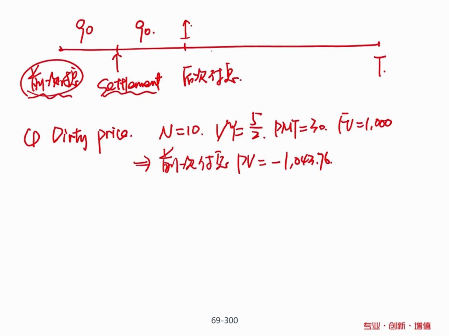 为什么是这样算折现到了前次付息呢,不是折现到了后次付息的时间点呢,说的还剩下十次coupon支付,是从哪个时间点开始呢