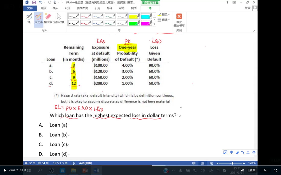老师,78题,PD不是按一年来算的吗?后面转化的目的是什么呢?还有PDd =1%是不需要转换嘛?