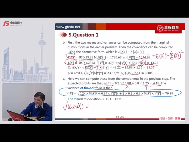 老师,蓝色部分的答案是不是错了,V(x)不是方差吗,我看答案里把V(x)和V(x)都平方了,最后开完根号等于的还是V(p)