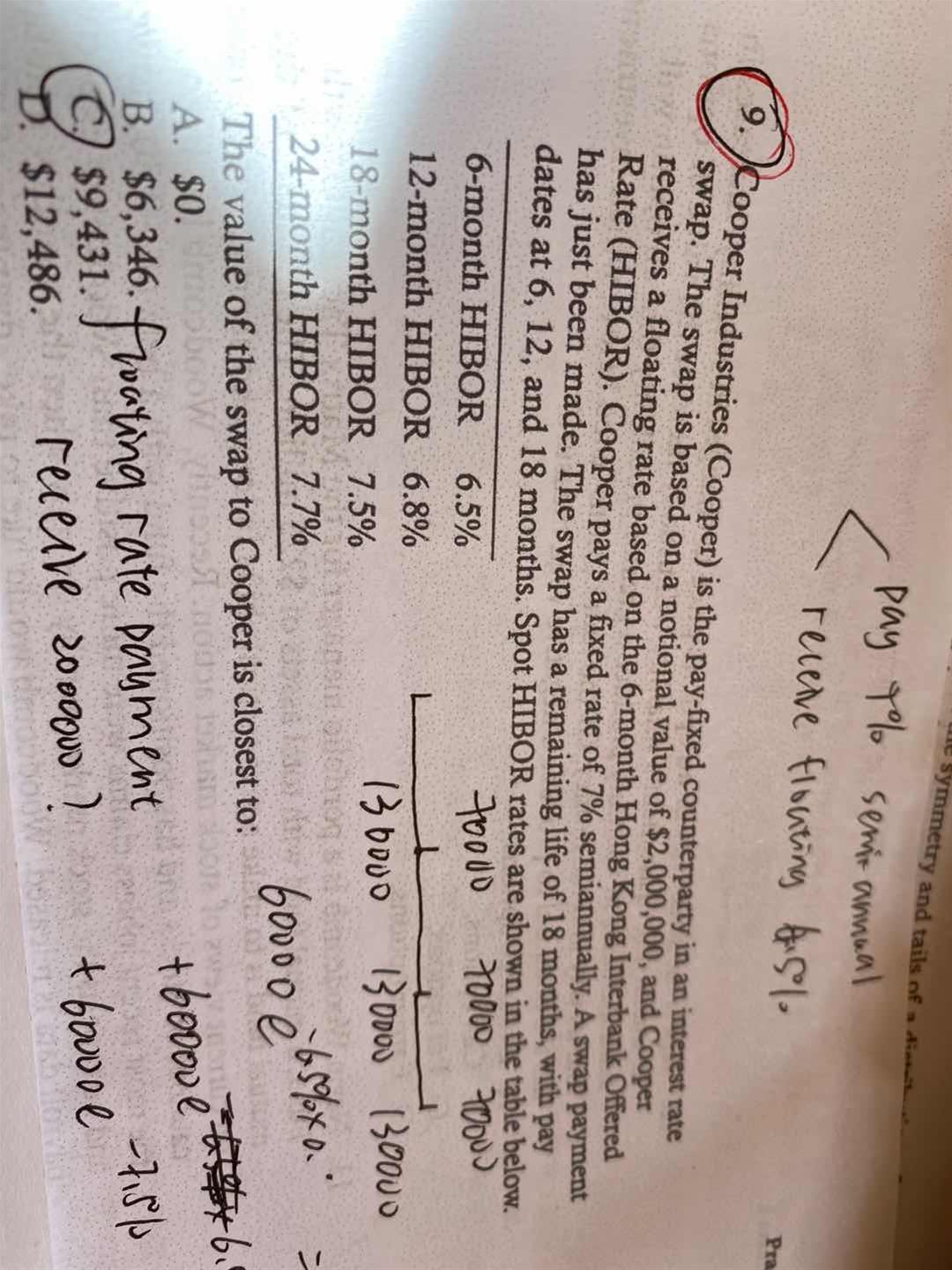 请问这道题为什么floating rate payment =200000